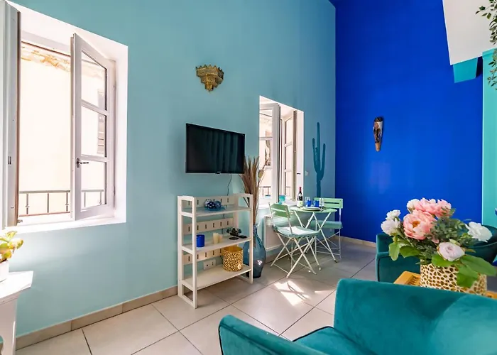 Featuring views of the city, the 39 m^2 Le Reve Bleu Majorelle - Duplex Sur Les Toits - Une Nuit A Nimes is located about 800 metres from Maison de Paul Rabaut. Wi-Fi is provided for both business and leisure activities.